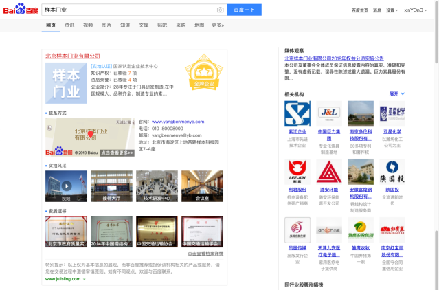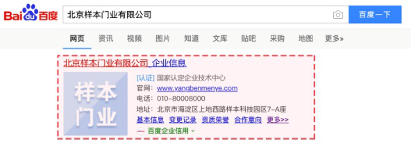 5、卡片外置企業(yè)logo、電話、官網(wǎng)、地址,減少轉化路徑;同步于百科詞條頁面露出,提升百科詞條豐富度