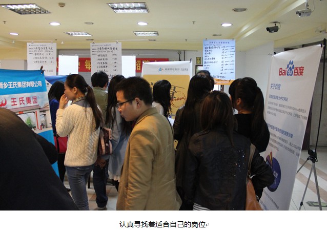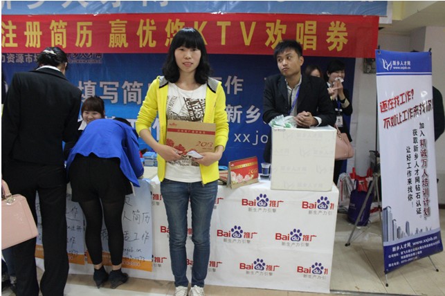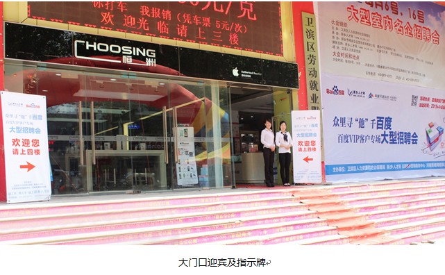 2013年4月26日,眾里尋“他”千百度—百度VIP客戶專場大型招聘會,在新鄉(xiāng)人力資源市場隆重舉辦。本次活動僅針對百度的優(yōu)質(zhì)客戶,為我們的客戶解決人才招聘難題,為社會上的優(yōu)秀人才提供發(fā)揮才能的平臺。今天,我們也充當了一次“度娘”,為優(yōu)質(zhì)企業(yè)和優(yōu)秀人才搭建橋梁,結(jié)下美滿的“姻緣”。