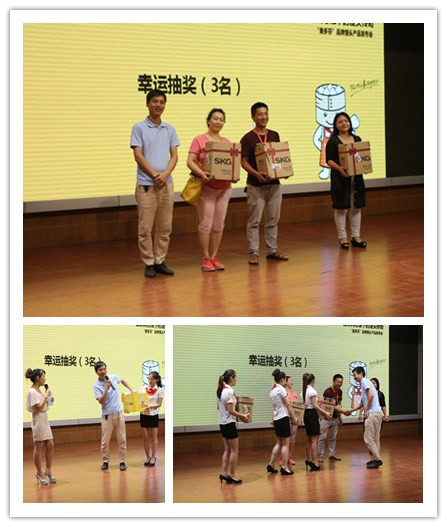 發(fā)布會還設(shè)置了驚喜的抽獎環(huán)節(jié),由麥多芬品牌新鄉(xiāng)地區(qū)總經(jīng)理畫坤先生抽取幸運觀眾,每人獲得精美榨汁機一臺并與畫總合影留念。
