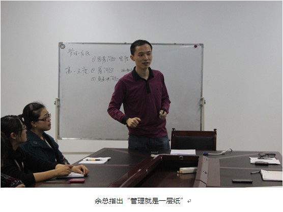 余總指出,提升管理其實(shí)就是捅破一層紙,而捅破這層紙的關(guān)鍵就是提升思想的深度與寬度,要站在公司立場(chǎng)上,多方位考慮利益雙方的得失,按照輕重緩急解決問(wèn)題。日常工作生活中,要注意細(xì)節(jié)方面習(xí)慣的培養(yǎng),如語(yǔ)言的魅力修煉要注意:兒童需要童真,女人需要贊美,年輕人需要直爽,中年人需要體面,老人需要尊重。行為的魅力修煉要注意:自我行為的約束及熱情幫助別人的行為付出。