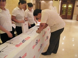 客戶陸續(xù)到場,并在簽到處認真的填寫個人資料