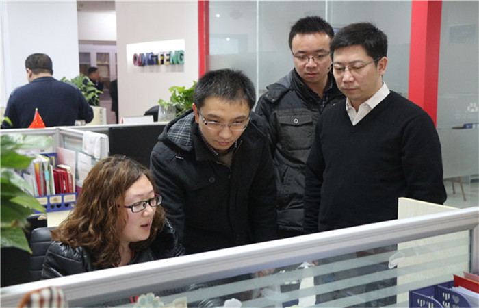省電子商務(wù)示范企業(yè)評審組領(lǐng)導(dǎo)參觀了青峰的辦公環(huán)境,并深入到員工的具體工作內(nèi)容進(jìn)行了解考察。百度客服部經(jīng)理孫曉晴女士為評審組領(lǐng)導(dǎo)詳細(xì)講解了百度推廣后臺的各項報告內(nèi)容,展示了如何通過后臺了解客戶的賬戶消費情況并及時為客戶做出優(yōu)化,領(lǐng)導(dǎo)為青峰每位員工的專業(yè)和用心表示連連贊賞。