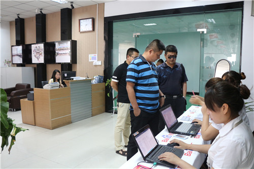 到場客戶有序地簽到。
