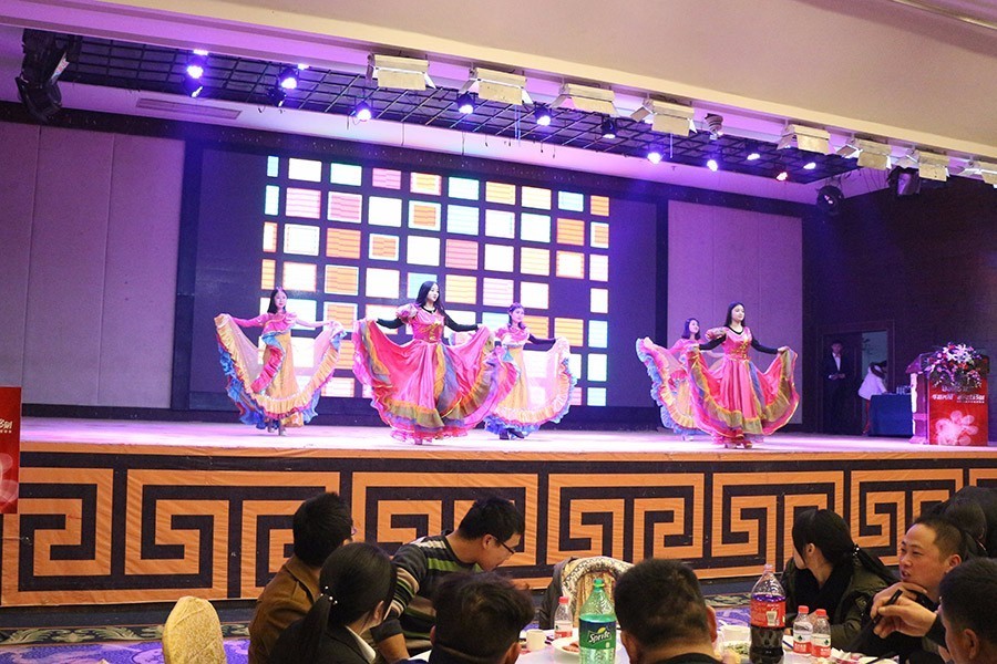 答謝會(huì)下半場(chǎng)開(kāi)始,可愛(ài)的姑娘們帶來(lái)開(kāi)場(chǎng)舞“大擺裙”表演