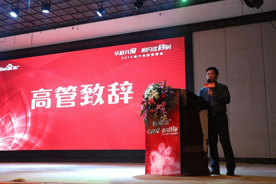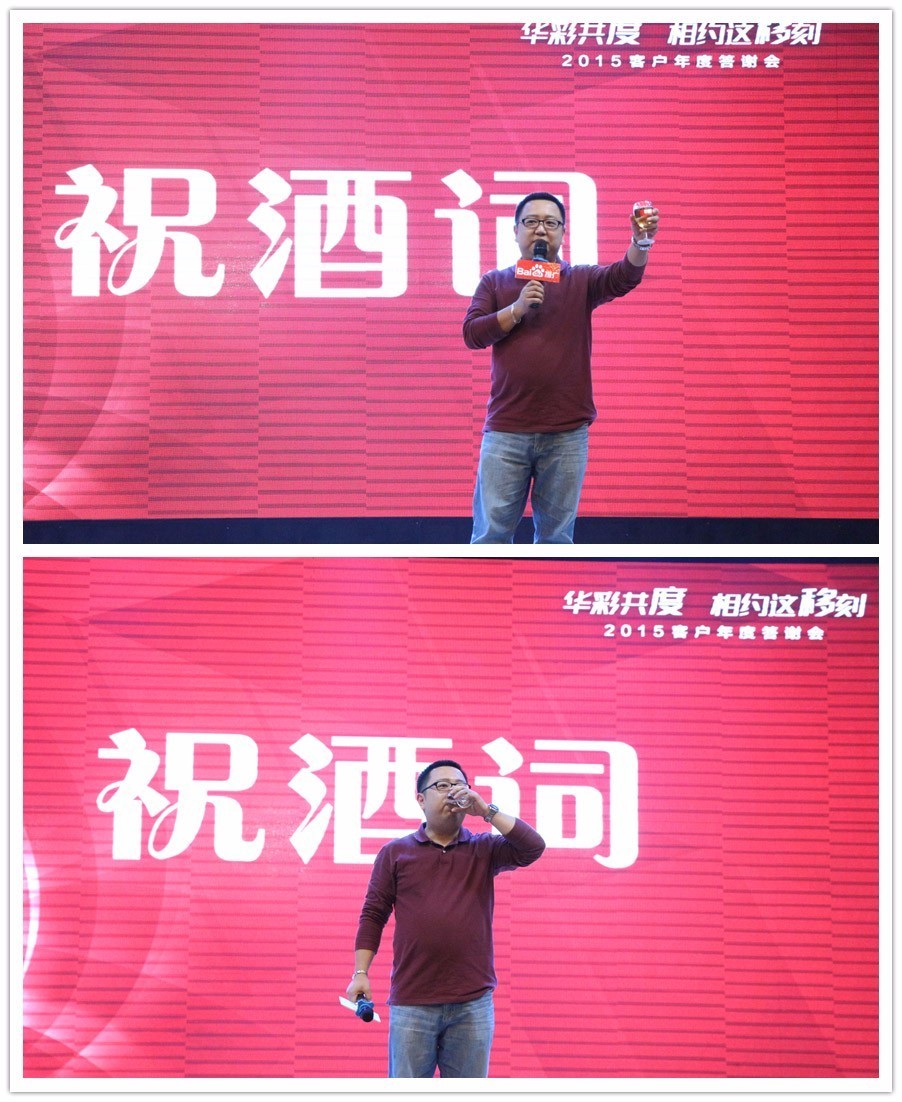 郭曉鵬先生致祝酒詞,希望來(lái)年各位客戶(hù)能和百度愉快合作,也希望客戶(hù)朋友們能借助百度生意越做越好!